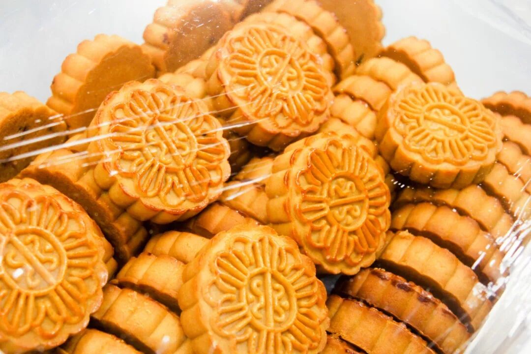 自己采购原材料,自己加工的金灿灿月饼,发出淡淡的香气,入口齿颊留香,让人垂涎欲滴。