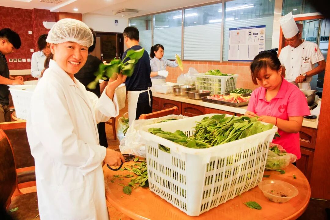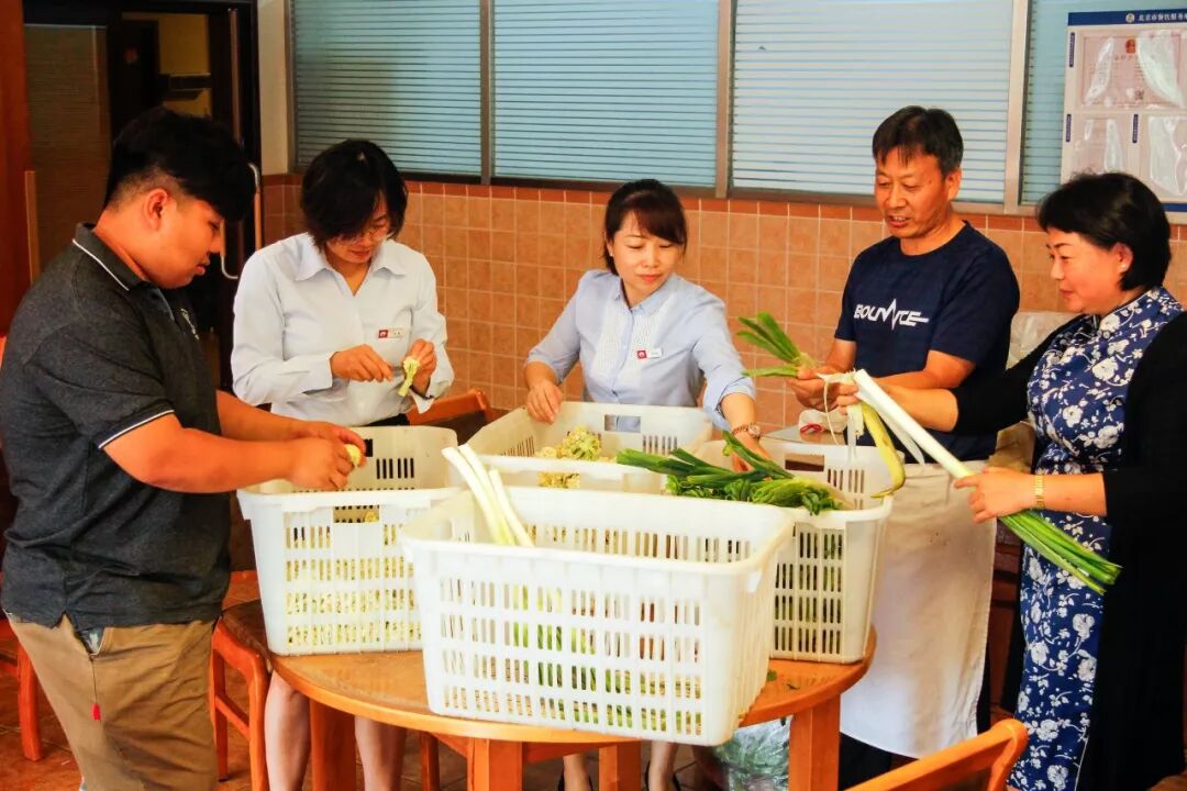 院领导和工作人员帮厨,为中秋聚会做准备。